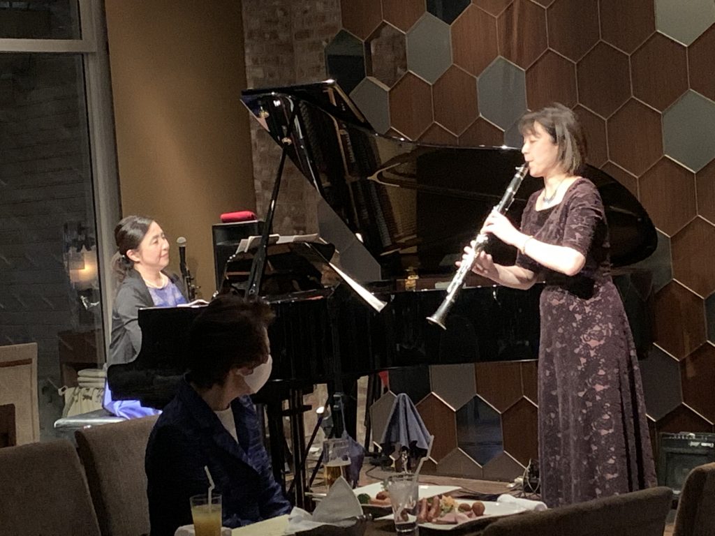 最後は、クラリネットとピアノでの演奏。一曲目は、クラリネットを演奏中に分解しながら演奏されるシュライナーの「immer kliener」。クラリネットが少しずつ短くなっていくにつれ、音質が変わってゆく面白さと楽しさを経験できました。最後の曲は、シューマンのクラリネットとピアノのための幻想小曲集。クラリネットとピアノの素晴らしい掛け合いで、シューマン独特の優しく美しいメロディーが表現されました。(クラリネット:西川香代さん / ピアノ:宮本智子さん)