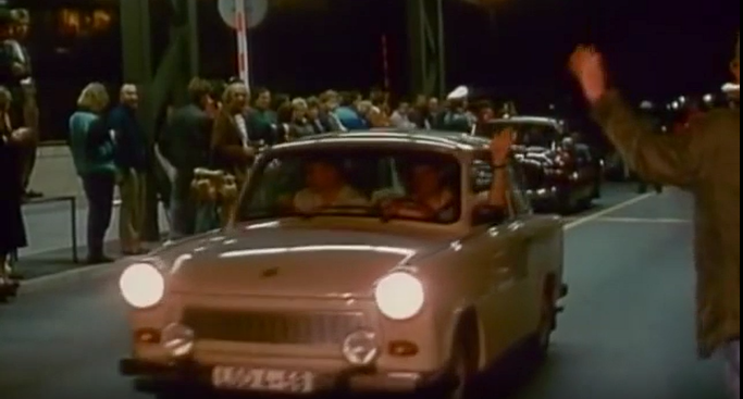 壁崩壊 西ベルリンで歓迎を受けるトラバント