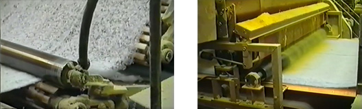B-3 フリース(不織布)工程 → B-4 フリースへの樹脂粉末拡散工程